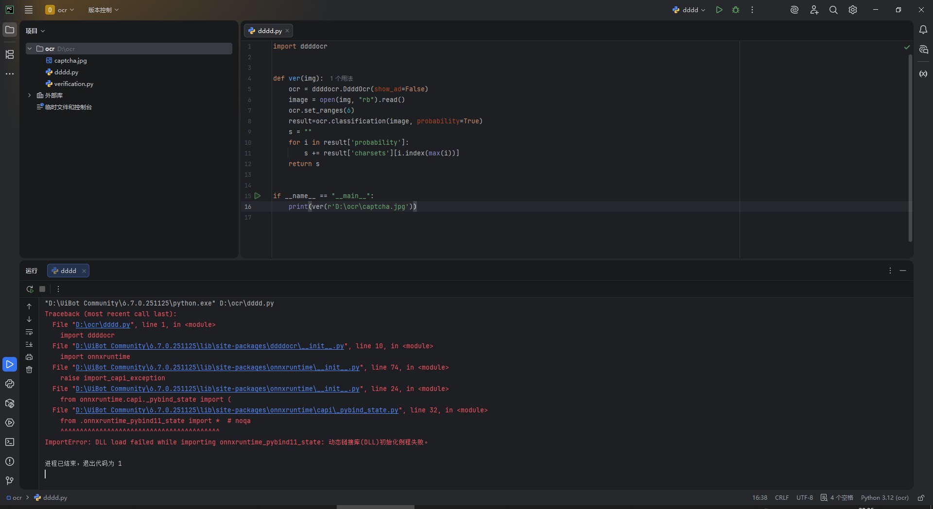 之前版本uibot正常使用。本地完整3.12.0解释器正常运行。新版uibot引用py脚本报错(见图2),uibot自带python解释器执行脚本报错(见图1)。uibot工程师自己试试用新版引用onnxruntime这个库报不报错。能修复的话麻烦回复一下